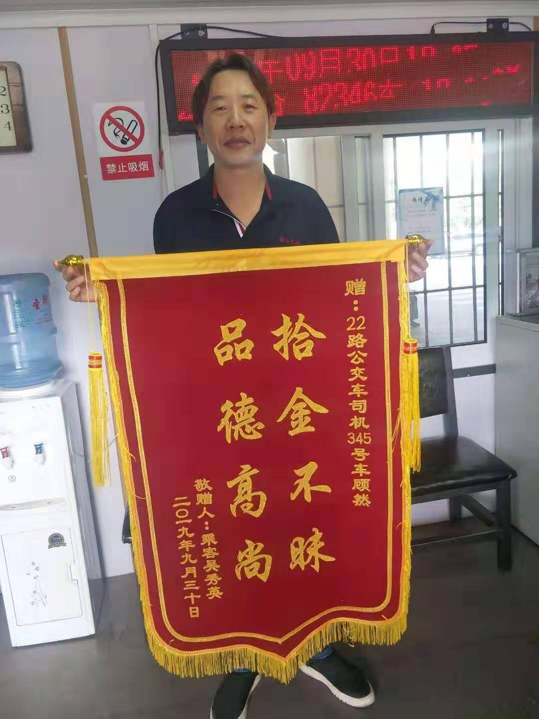 “感謝公交公司培養(yǎng)了這么好的師傅啊,要不是你們主動打電話給我,我丟都不道哪丟的,我還得去補證件太麻煩了!” 9月30日一大早,家住在鐵西區(qū)的吳大娘手拿錦旗急匆匆來到了公交22線樞紐站休息室內,找到3080345號車駕駛員顧然師傅,親自將印有“品德高尚,拾金不昧”的錦旗送到他的手中。 原來在3天前的下午,吳大娘在鐵西區(qū)委乘坐22線公交車后,因隨身攜帶的東西太多,把手提包及背包都放在了座椅的一側,吳大娘在二臺子站下車后回到家中突然發(fā)現(xiàn)背包沒有了,吳大娘心急如焚,因為背包里不僅僅有幾十元的現(xiàn)金還有很多重要的證件及證明材料,這些東西對自己十分重要,補辦十分不便。因為上了年紀,吳大娘記不起背包到底丟在哪里了,正在焦急尋找之時,吳大娘接到了鞍山交運集團三公司客運八隊駕駛員顧師傅的電話,詢問她是否丟失了一個背包。顧大娘接到電話后立即趕到站前樞紐站調度室,取回了遺失的背包!原來在公交車到終點后,顧師傅在車內例行巡視時發(fā)現(xiàn)了這個背包,打開后找到了有吳大娘的聯(lián)系方式并撥打了這個電話。 22線不僅是文明服務線路更是交運集團迎賓線路,從創(chuàng)建迎賓線路開始,全體22線駕駛員始終不忘初心,為的就是服務好每一名乘客。顧然同志所在路隊已對顧然同志給予了公開表揚,并勉勵全體同志要把“學習雷鋒好榜樣,優(yōu)質服務暖人心”的精神繼續(xù)發(fā)揚。